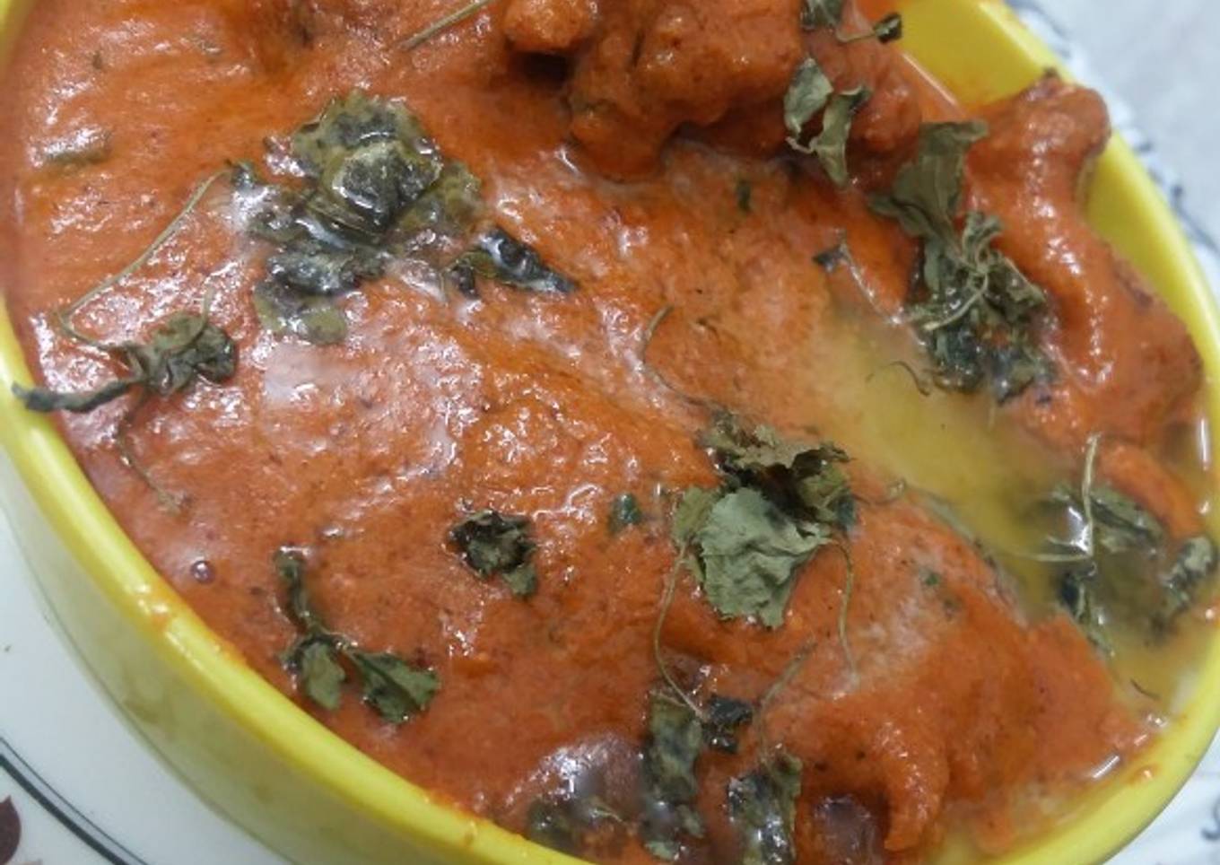 - Garnish with some butter and kasturi methi.Serve chicken Lababdar with paratha..