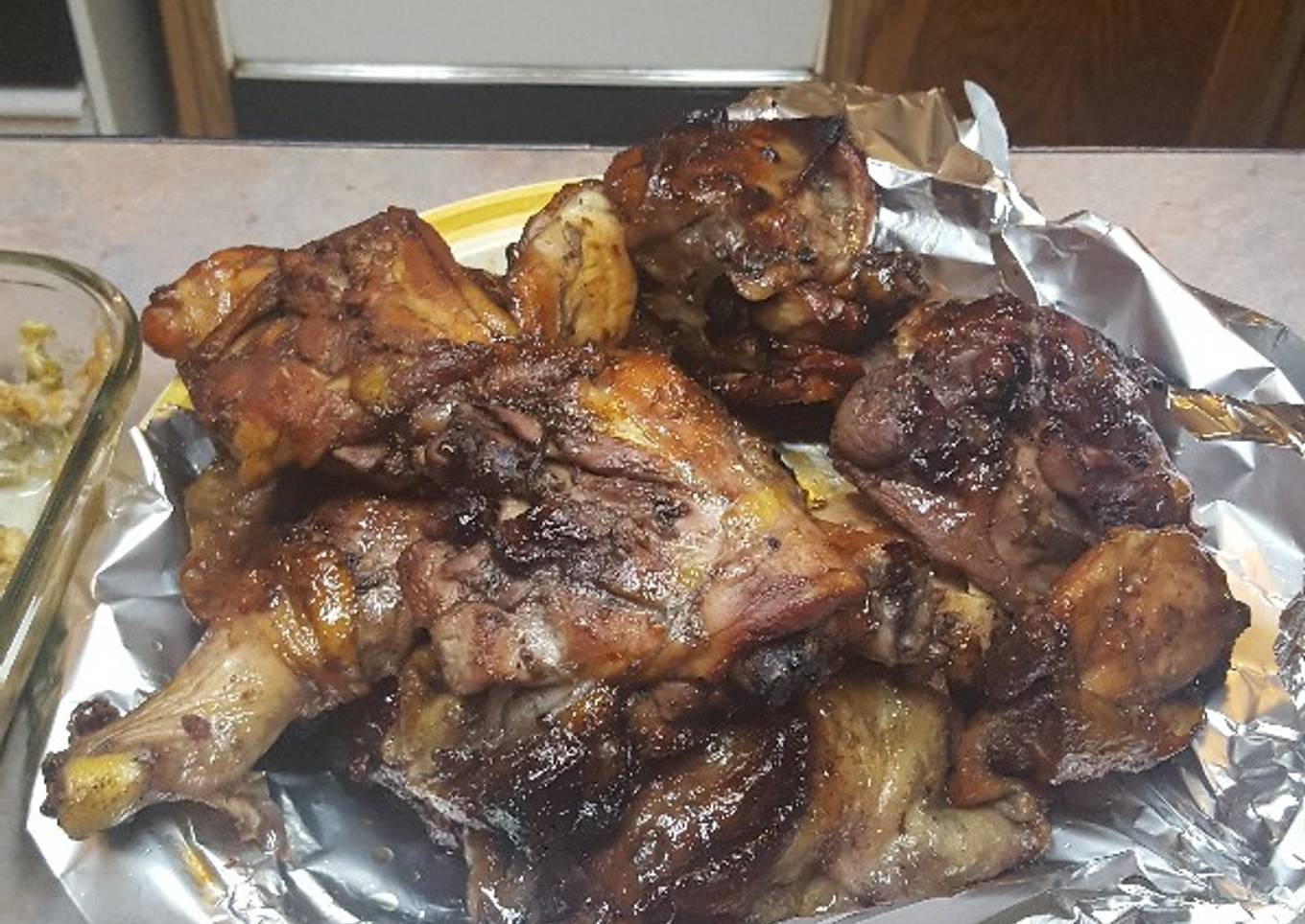 - Melt 3 jars the blueberry spread then dump it all over the chicken.. make sure its mixed really good with the chicken.