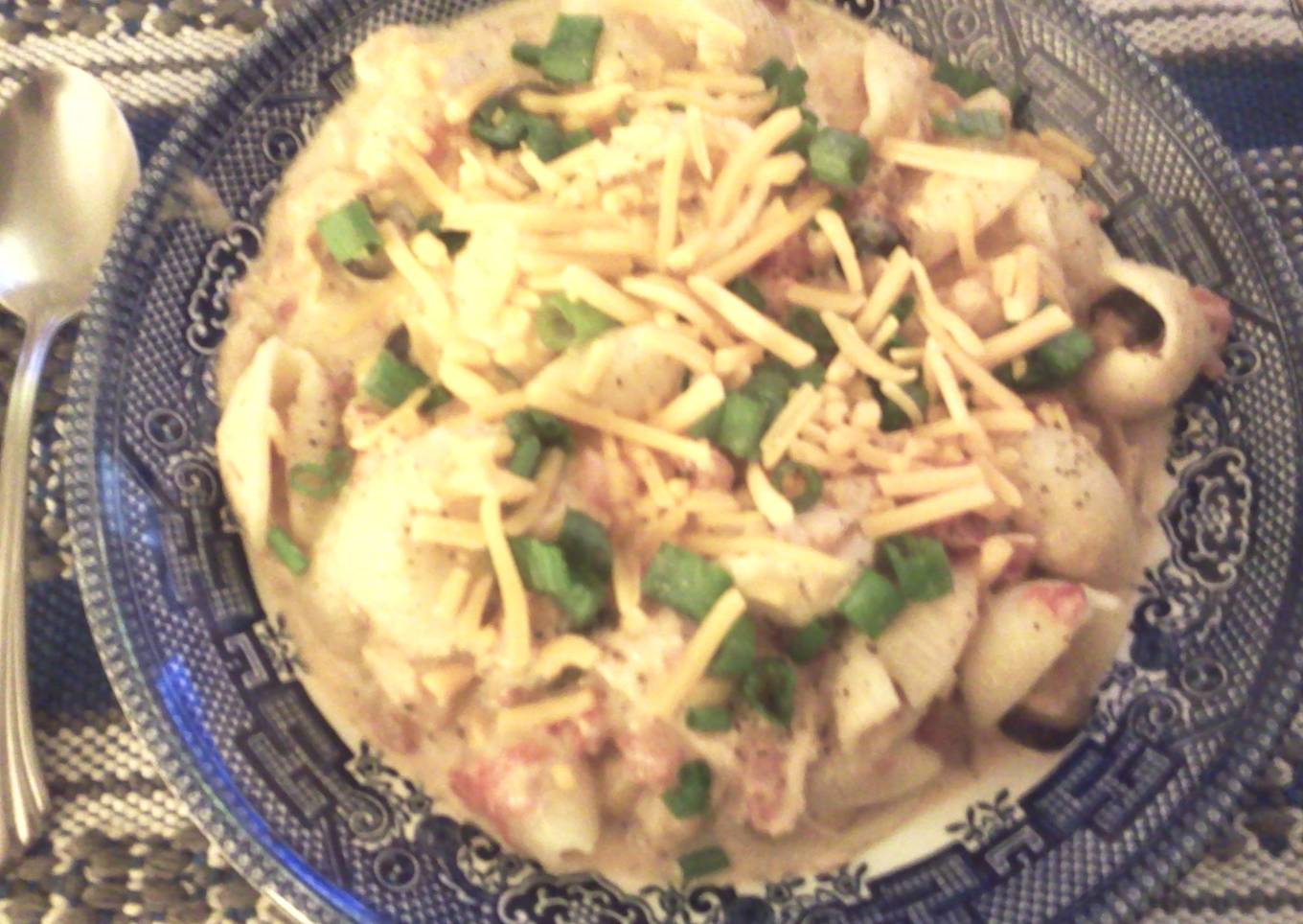 - 1 lb medium shell pasta, cooked & drained